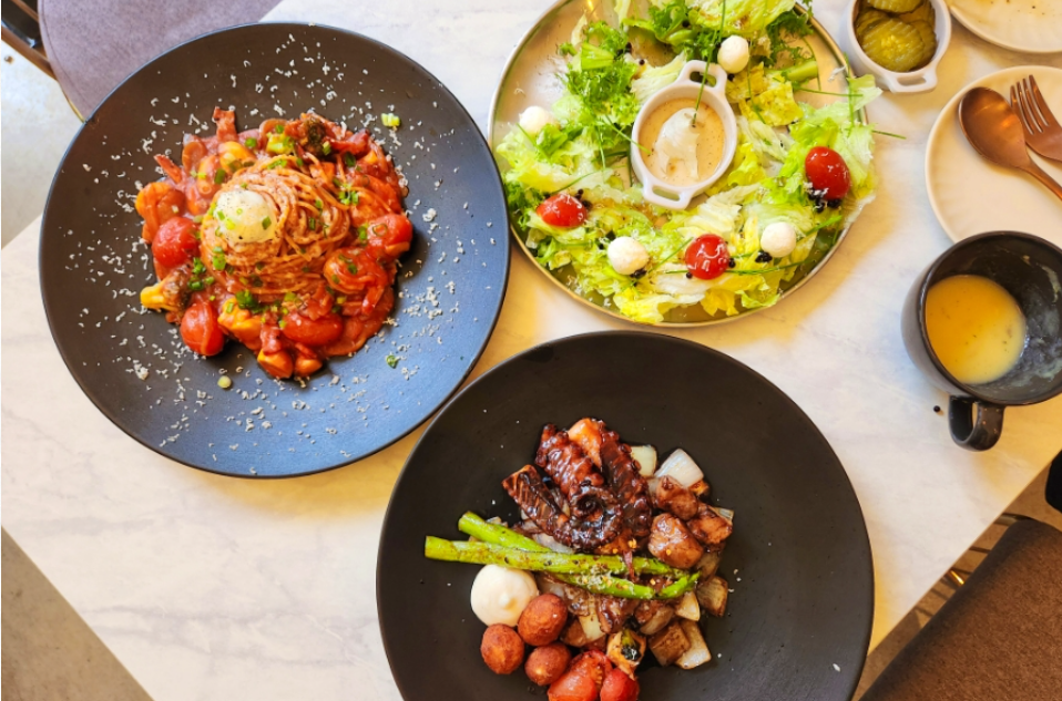 임파스타레에서는 브런치, 파스타, 스테이크 등 여러 종류의 음식을 맛볼 수 있습니다. 브런치는 오전 11시 이전에 주문하면 얼리버드 이벤트가로 9,900원에 즐길 수 있습니다.