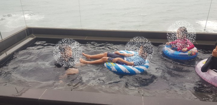 옆쪽엔 얕은 유아풀도 있는데 거긴 수온이 더 따뜻하게 맞춰져있어서 어린아이들 놀기 좋겠더라고요
