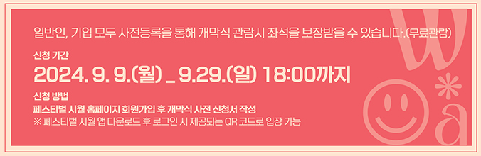 - 사전신청기간 : 2024. 9. 6.(금) ~ 9. 29.(일)