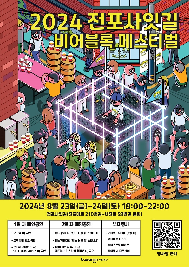 - [전포사잇길 Vibe] 90s ~ 00s Music DJ 공연: 90년대와 2000년대의 히트곡을 재현하는 DJ 공연이 이어지며, 그 시절의 추억을 떠올리게 합니다.