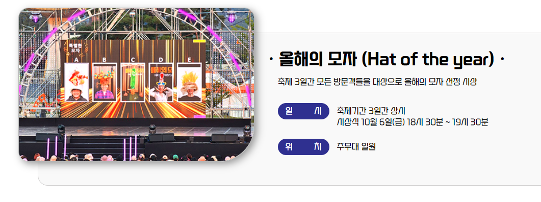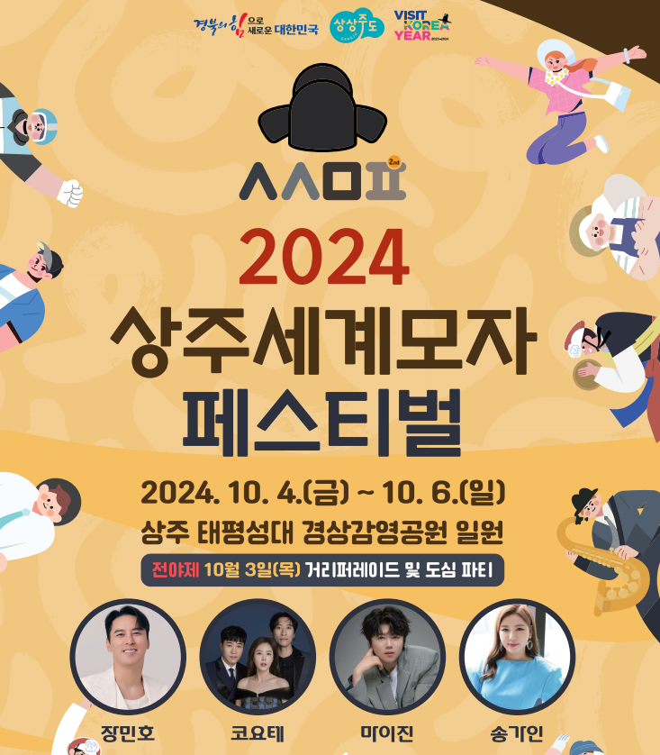2024 상주세계모자페스티벌은 모자라는 주제를 통해 다양한 문화와 전통을 경험할 수 있는 기회를 제공하는 축제로, 이 축제는 모든 연령대의 관람객들에게 즐거움과 감동을 선사할텐데요. 여러분도 이 특별한 축제에 참여하여 잊지 못할 추억을 만들어 보세요!